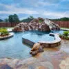 This style of pool is often accompanied with elements of nature such as stones and earth-tone tiles. Many of our freeform pools feature waterfalls, streams and grottos to create the most authentic natural getaway. Choosing the right plants for the landscaping is also important depending on the look you want. From tranquil tropical oases to lush lagoons, the possibilities are endless.